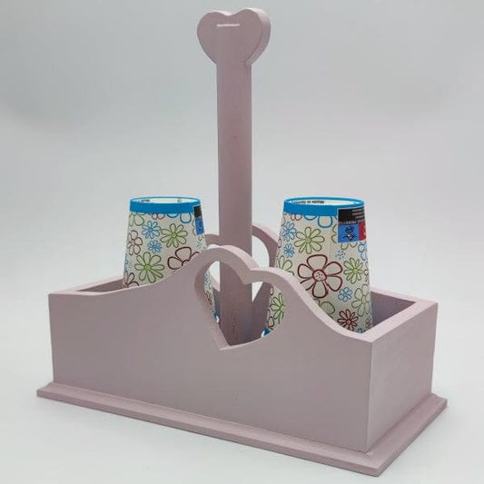 Porta Bicchieri artigianale in legno con intarsio a Cuore