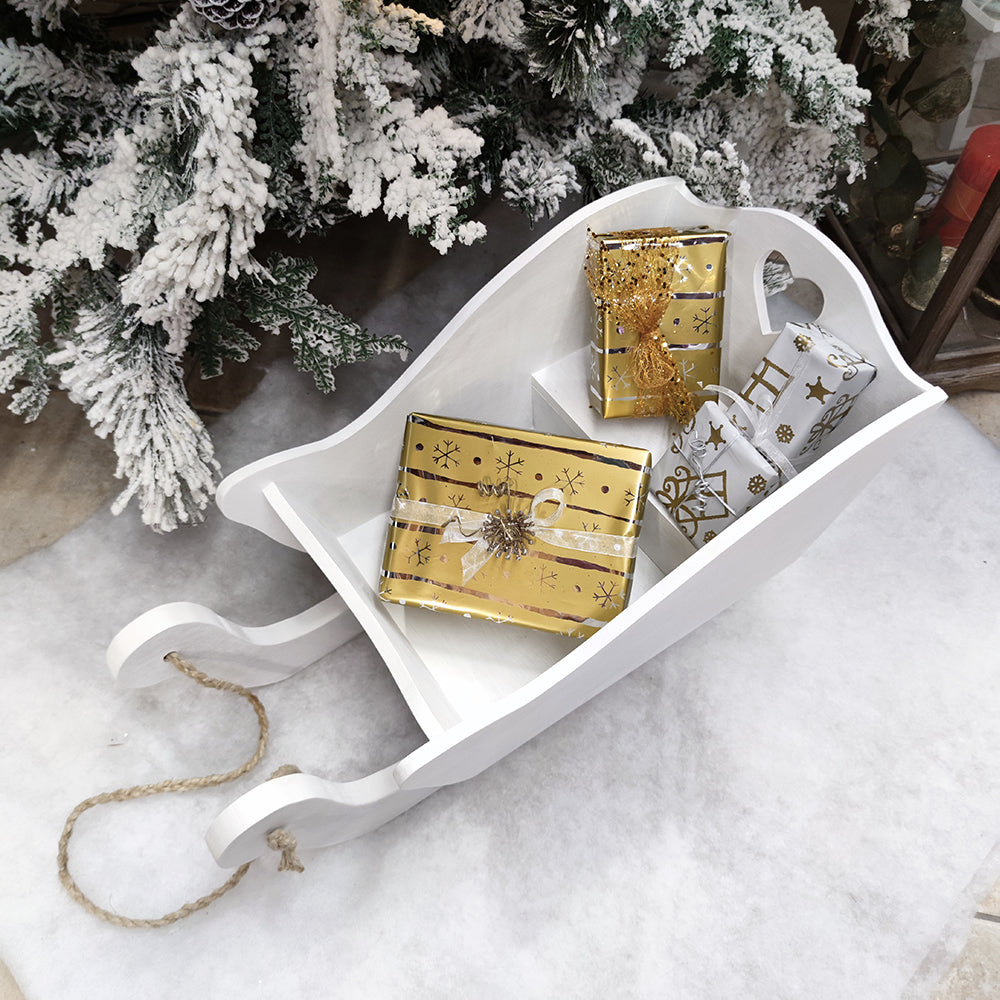 La slitta di Babbo Natale, è finalmente arrivata su Domeahome! E' perfetta da utilizzare come porta regali, decorazioni, panettoni ecc da posizionare sotto il tuo albero di Natale. Una bellissima idea che renderà la tua casa ancora più magica durante le feste.